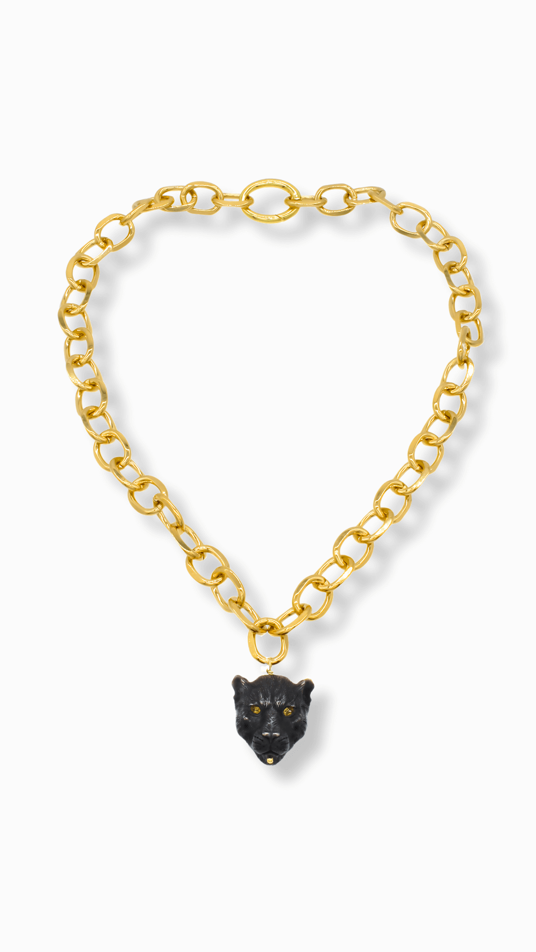 Chunky Gold Chain with Black Panther Pendant