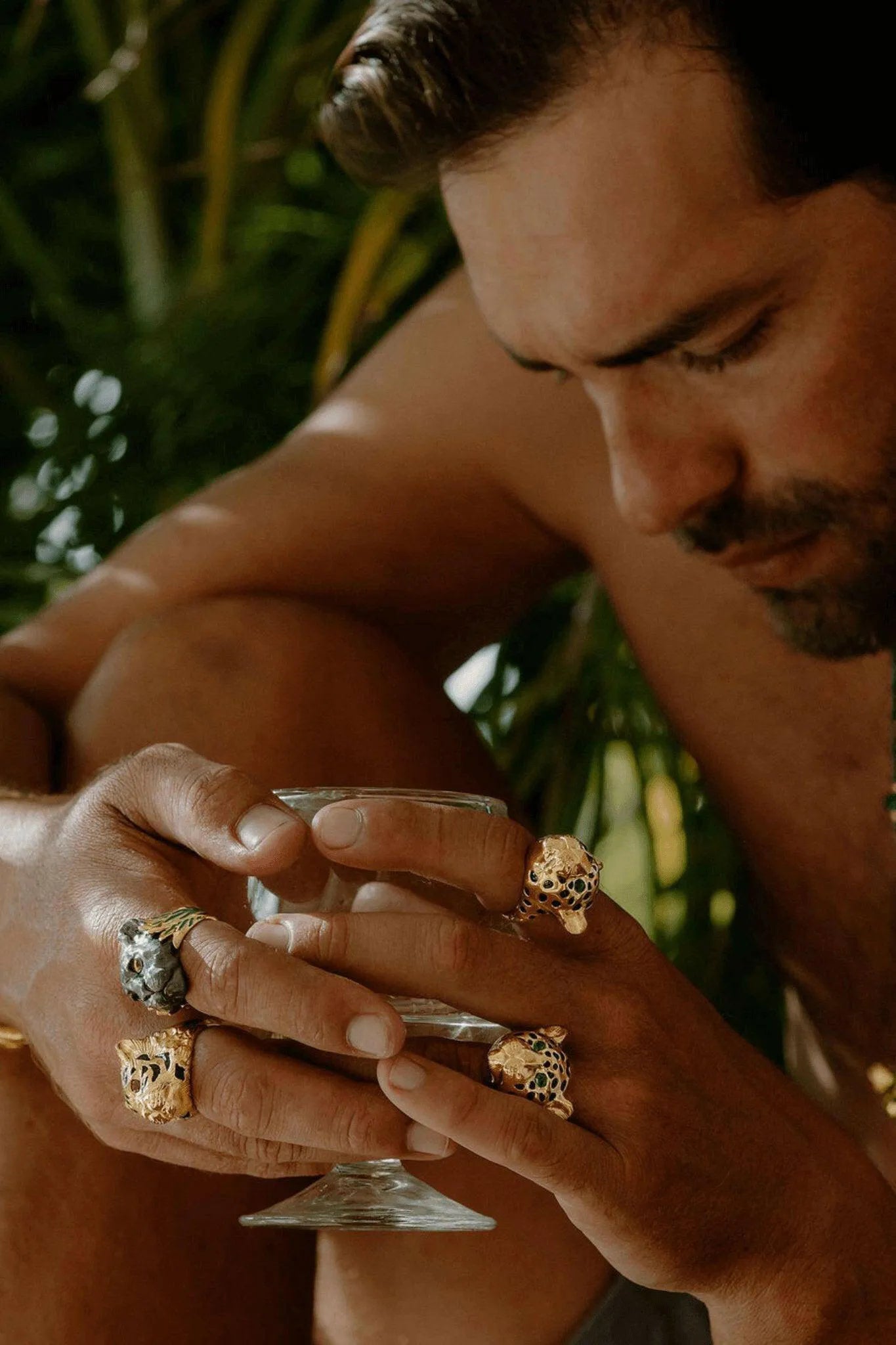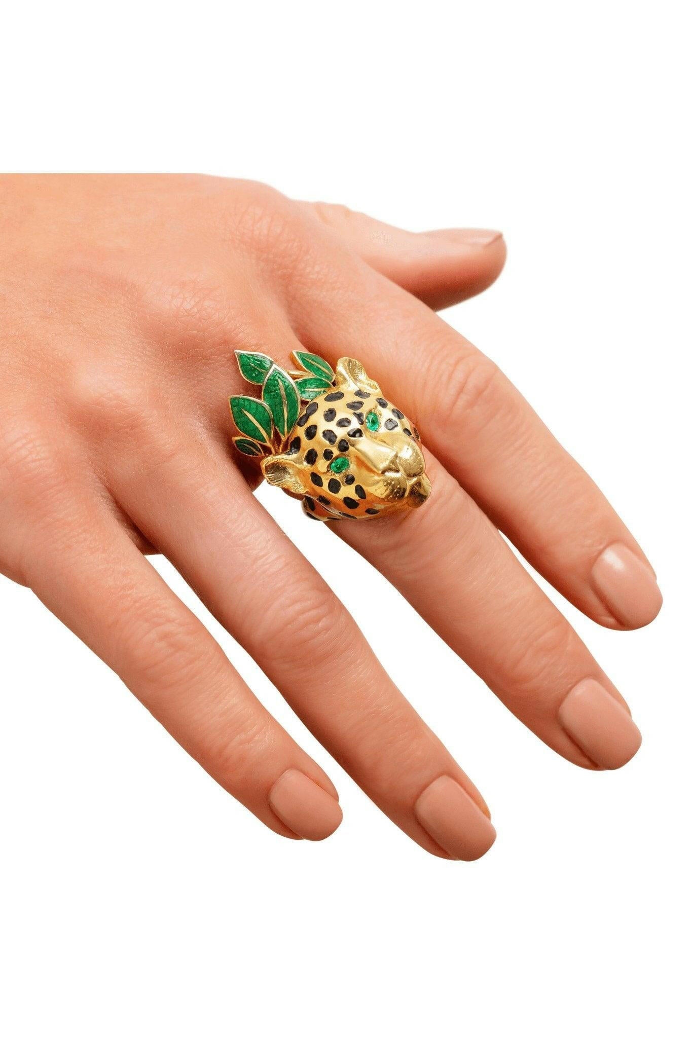 This gorgeous little enamel leaf ring is perfect for stacking along with our big cat ring collection or delicate and pretty worn alone.