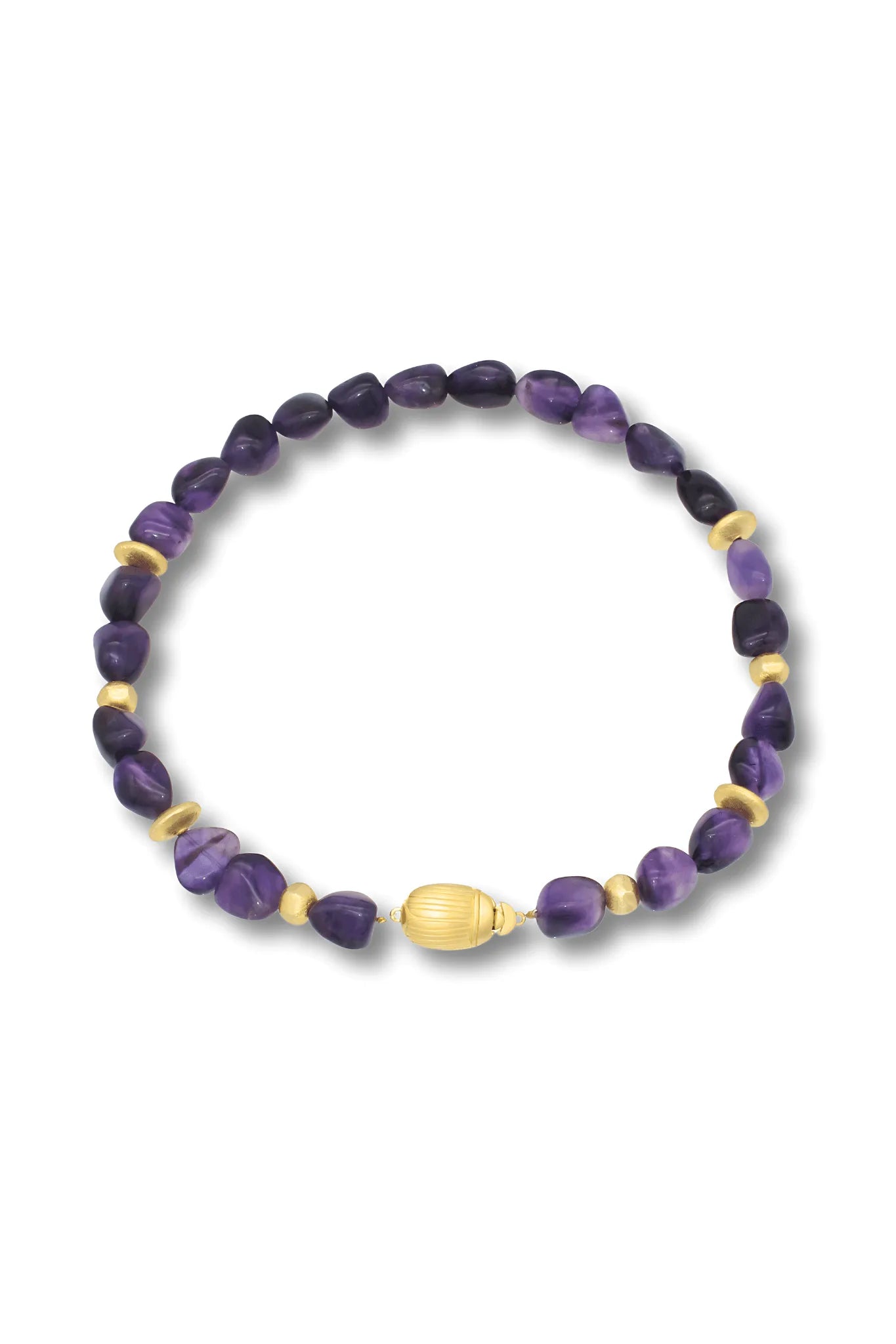 Le originali pepite di ametista brasiliana sono completate da perline vermeil e una chiusura a scarabeo, che funge da punto focale.