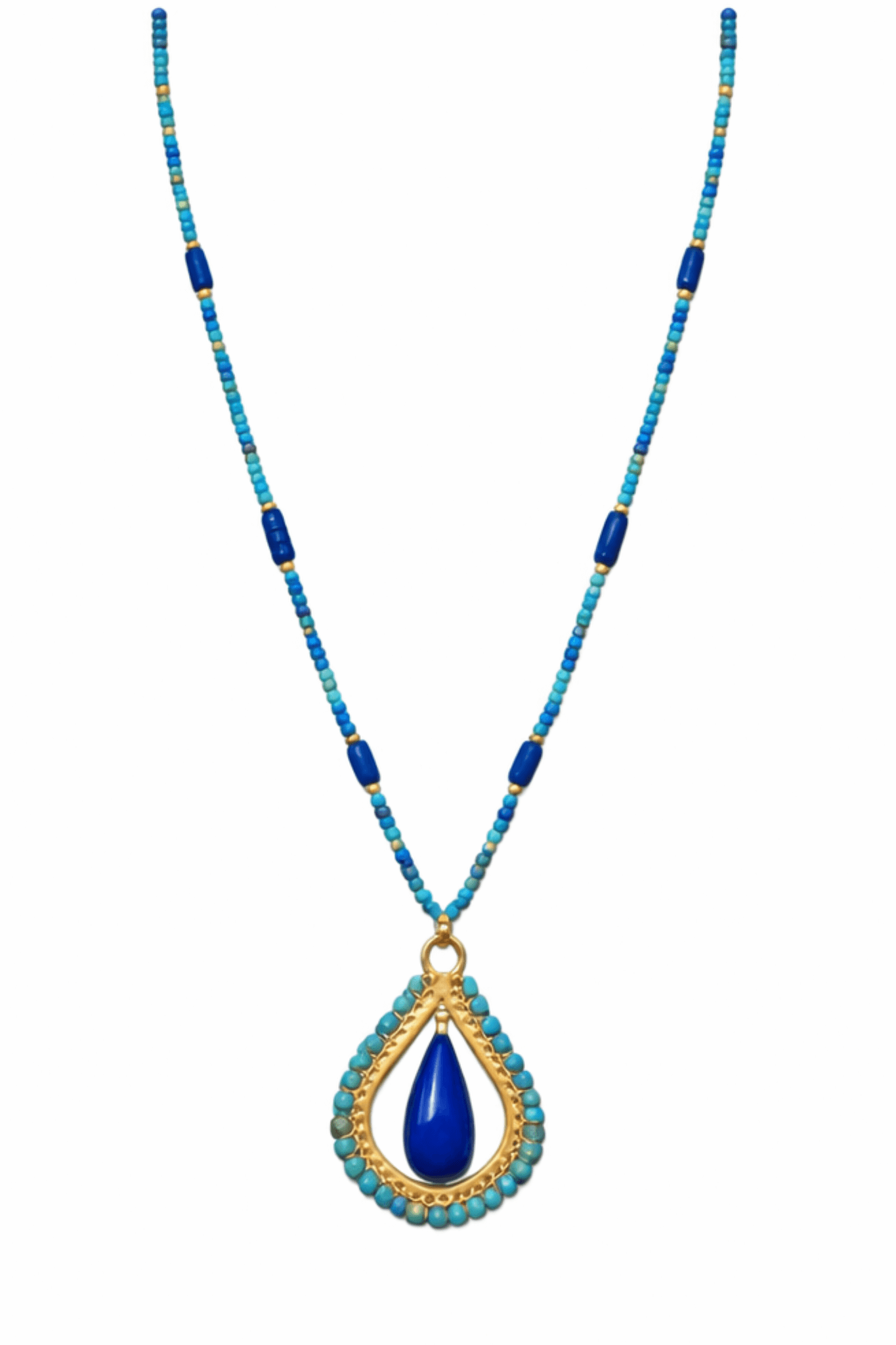 Long Lapis Lazuli and Turquoise Bead Necklace